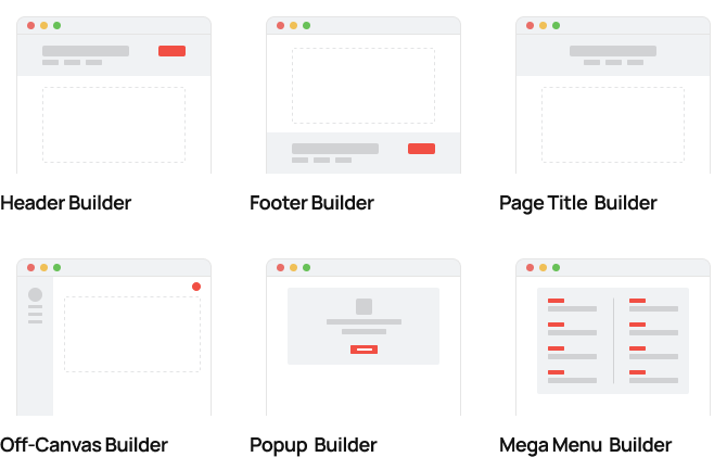 Take full control of your website structure—header, footer, off-canvas, and page titles—with the powerful template builder.